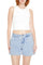 A sweater-knit tank top featuring a round neckline, shoulder straps, and a cropped hem.