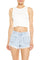 A ribbed knit tank top featuring a round neckline, shoulder straps, bow chest embellishment, cropped silhouette, and lettuce-edge hem.