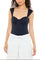 A knit bodysuit featuring a sweetheart neckline, shoulder straps, a square-cut back, and ruched bust.