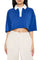A knit rugby shirt featuring contrasting colorblock basic collar, short sleeves, a cropped hem, and boxy fit.