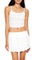 A knit cami featuring an allover ditsy floral print, straight-cut neckline and back, adjustable straps, and a cropped hem.