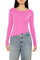 A ribbed knit sweater featuring a round neckline, long sleeves, and asymmetrical hem.