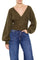A cable knit sweater featuring a surplice neckline, long peasant sleeves, ribbed trim, and a semi-cropped hem.