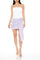 A knit mini skirt featuring a ruched construction, high-rise waist, draped design, O-ring accent, and fitted silhouette.