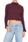 A wide-ribbed knit sweater featuring a mock neck, long sleeves, distressed trim, and cropped hem.