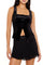 A velvet tank top featuring a square neck, button-front closures, princes seams, and split hem.