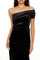 A velvet top featuring a foldover one-shoulder neckline, single short sleeve, and cropped hem.