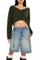 A fuzzy knit mock wrap sweater featuring a crossover design, dropped long sleeves, a V-neckline and cropped hem.