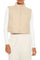 A puffer vest featuring a quilted channel-stitched construction, funnel neck, zip-up front closure, slanted front pockets, and semi-cropped hem.