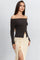 • Ribbed sweater-knit top featuring an off-the-shoulder neckline