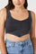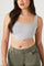 A seamless knit tank top featuring a ribbed construction, scoop-cut neckline and back, shoulder straps, and a cropped V-hem.